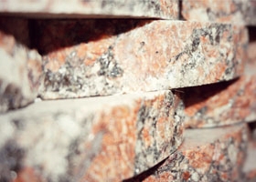 Песчаники состоят из 55—70% кварца, 25—28% полевого шпата, 3—7% глинистых веществ, 0,5—1,5% гематита и 2—3,5% других. Прочность их при сжатии колеблется от 100 до 280 МПа, при средней плотности около 2400—2650 кг/м3. Песчинки плохо принимают полировку. Цвет песчинок чаще серый или желтый, а иногда зеленый, коричневый и красный. По пилимости песчаники можно отнести к V группе.